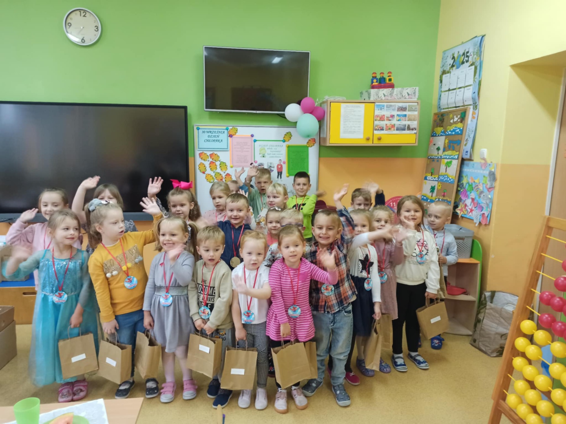 We wtorek 30 września w naszym przedszkolu odbyły się wyjątkowe obchody Dnia Chłopaka. Z tej okazji dziewczynki przygotowały dla swoich kolegów niezwykłe miłe niespodzianki. Od samego rana w przedszkolu panowała radosna atmosfera, a dzieci czekały na wspólne świętowanie. Głównym punktem dnia było uroczyste odśpiewanie „Sto lat” przez dziewczynki, które z ogromnym zaangażowaniem wyraziły swoje życzenia dla chłopców pełne ciepłych słów i uśmiechów. Następnie Rada Rodziców wręczyła chłopcom prezenty, a symbolicznie także dziewczynkom, które spotkały się z dużym entuzjazmem i radością. Dzień upłynął w niezwykłej, miłej atmosferze. Przedszkolaki spędziły czas na wspólnych zabawach, piosenkach i szkolnej dyskotece. Śmiech i radosne okrzyki rozbrzmiewały w całym przedszkolu, a dzieci wzajemnie okazywały sobie sympatię i życzliwość.