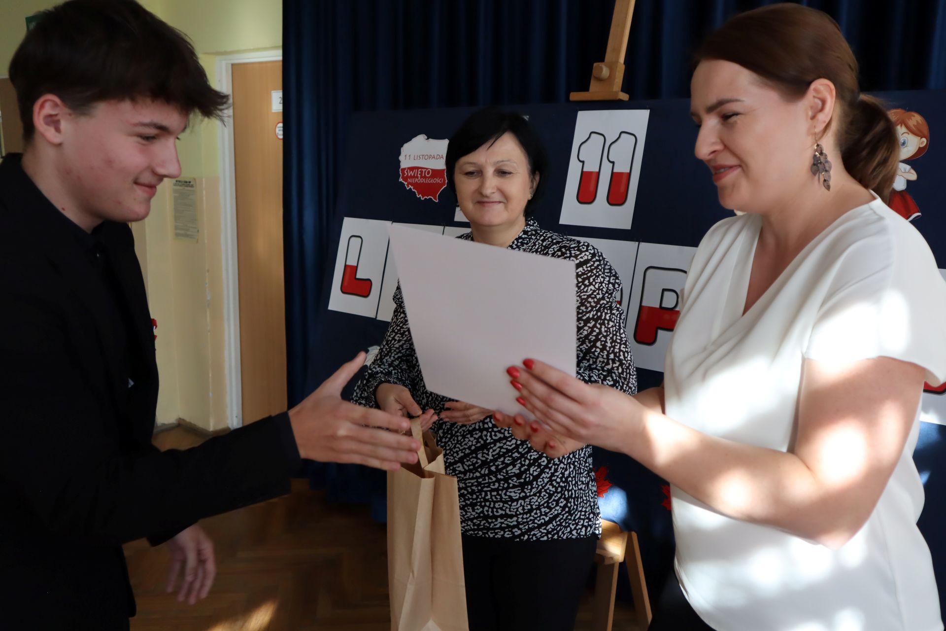 Laureatom konkursu zostały wręczone dyplomy i nagrody rzeczowe ufundowane przez Gminną Bibliotekę Publiczną w Wielgomłynach. Serdecznie dziękujemy Pani Paulinie Dziębor – kierownikowi GBP w Wielgomłynach za dotychczasową współpracę i podejmowane działania na rzecz naszej szkoły.
