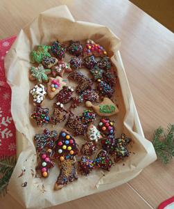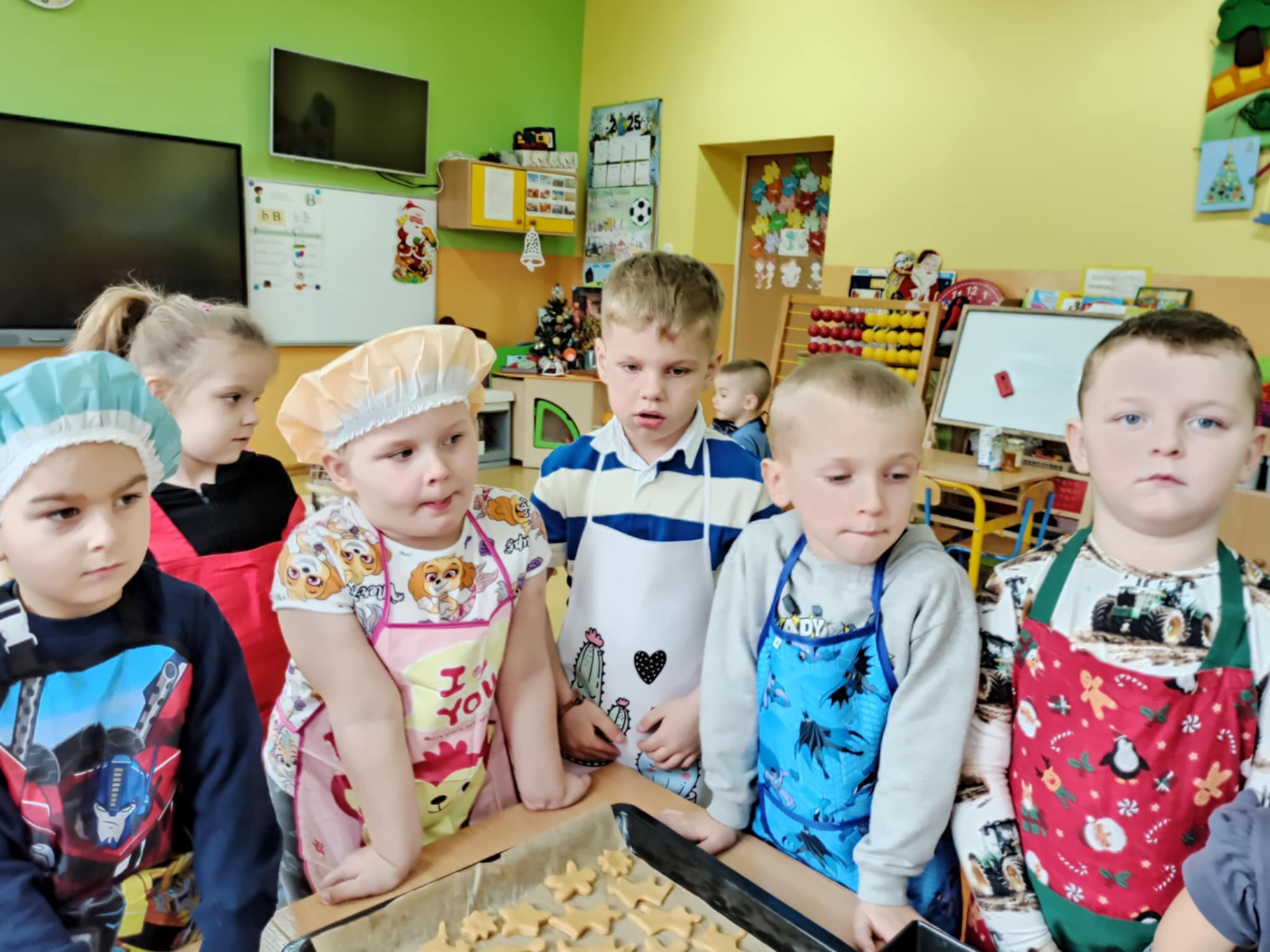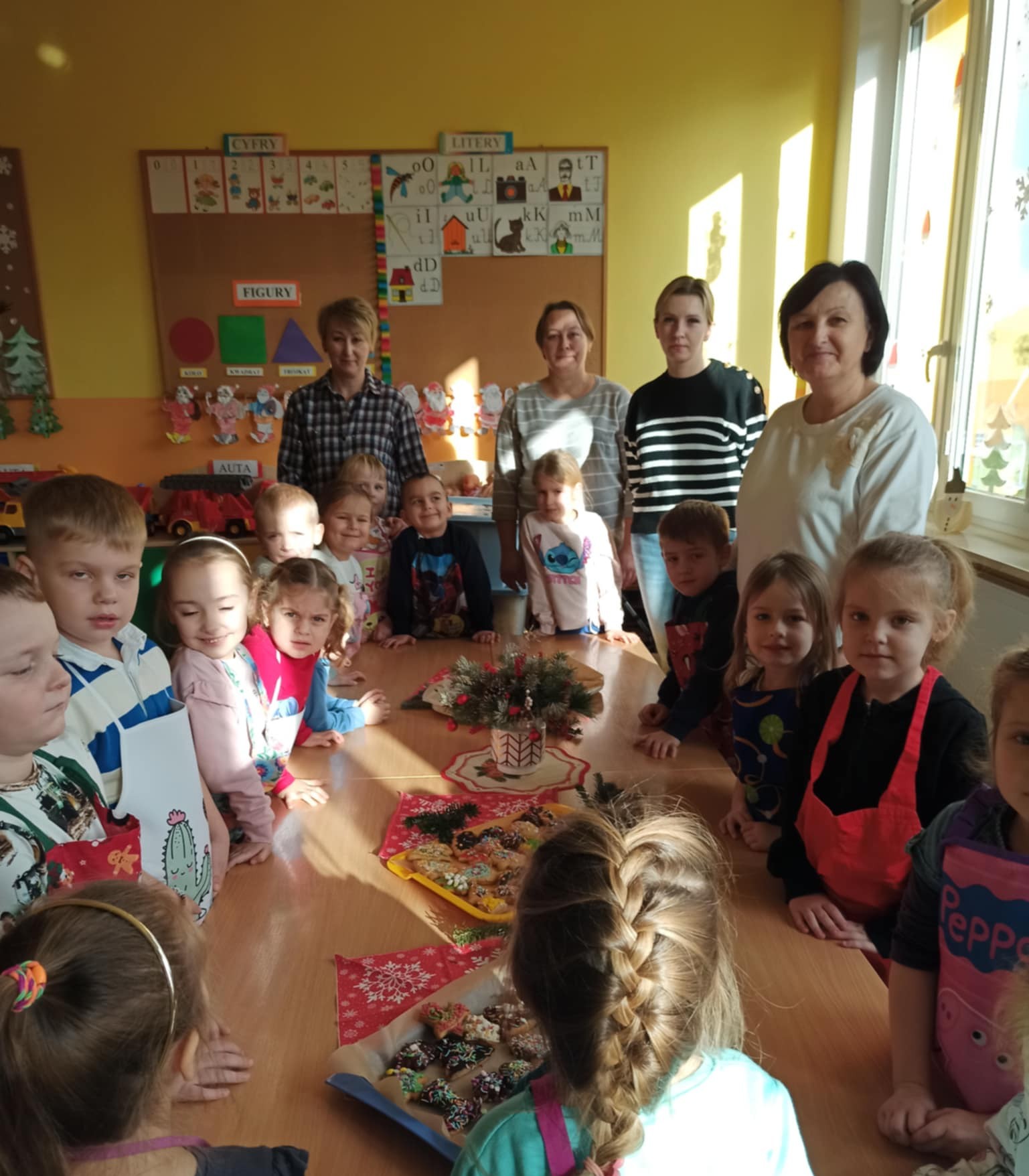 W tym magicznym czasie oczekiwania na Święta Bożego Narodzenia, nasze przedszkole zamieniło się w prawdziwą piernikową krainę! W środę 10 grudnia pod kierunkiem wychowawczyni pani Kamili Musiał, pani Agnieszki Pawlus oraz rodziców: pani Moniki Furmańczyk i pani Agnieszki Stanek odbyły się warsztaty pieczenia pierniczków, które wprowadziły nas w cudowny, świąteczny nastrój. Dzieci z ogromnym zapałem i radością uczestniczyły w każdym etapie tworzenia świątecznych ciasteczek. Najpierw pod czujnym okiem rodziców odmierzały wszystkie składniki, potem zabrały się za wyrabianie i wałkowanie ciasta. W końcu nadszedł czas na ulubioną część - wycinanie. Z pomocą foremek powstawały gwiazdki, serduszka, choinki, które następnie piekły się w szkolnej kuchni, wypełniając całą szkołę cudownym zapachem. Gdy pierniczki ostygły, przedszkolaczki przystąpiły do ich dekorowania. Polewa, kolorowe lukry i posypki pozwoliły na stworzenie prawdziwych, małych dzieł sztuki. Każde dziecko wykazało się niezwykłą pomysłowością, tworząc niepowtarzalne wzory. Warsztaty były doskonałą okazją do kultywowania tradycji bożonarodzeniowych, rozwijania zdolności manualnych i kreatywności. Dzień upłynął nam w przyjaznej i świątecznej atmosferze. Dziękujemy rodzicom za poświęcony czas i wspaniałą współpracę.